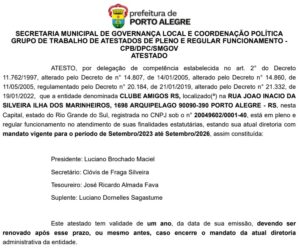 Atestado de Pleno e Regular Funcionamento do Clube Amigos do RS.